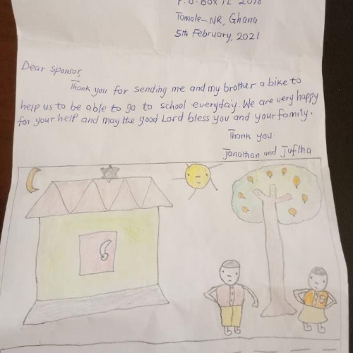 Please thank the lovely young man for his sacrifice in giving this money it will be such a blessing to the boys who currently walk to and from school.